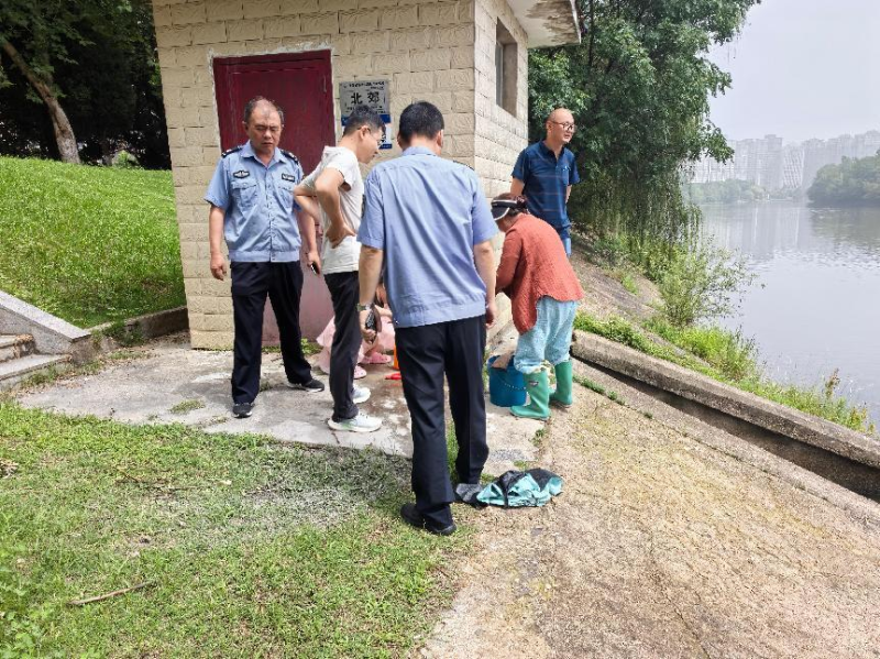 在巡查淠河总干渠阳光水岸段发现有一老人带孩子正在下河洗衣服、一名中年男子正准备向河中投放地笼。巡查人员迅速上前进行制止,对他们行为进行说服教育并成功劝离。